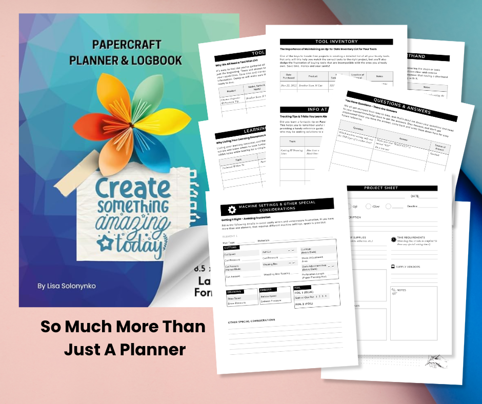 While this planner is tailored to the Brother Scan N Cut SDX125, it’s relevant to all Scan N Cut models. And don’t worry; there’s plenty of space to add custom information for your specific machine. So grab your glue, and let’s get organized!